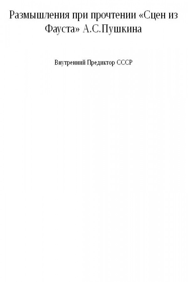 Размышления при прочтении «Сцен из Фауста» А.С.Пушкина