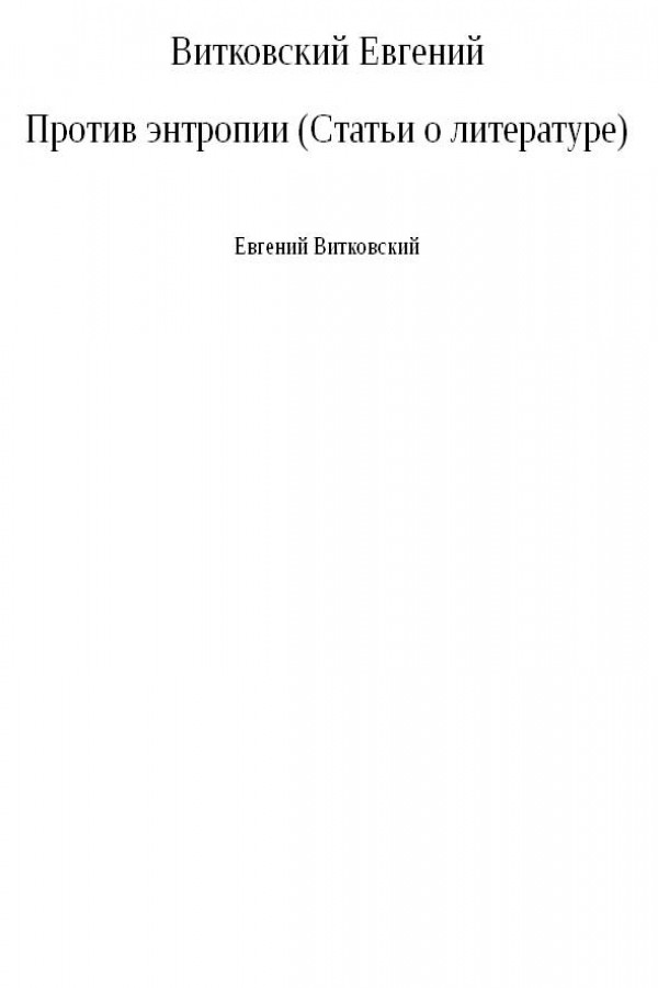 Против энтропии (Статьи о литературе)