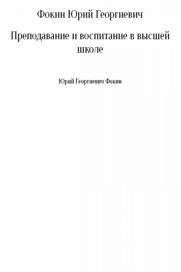 Преподавание и воспитание в высшей школе
