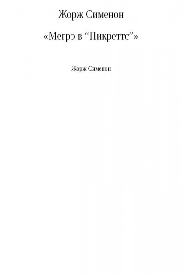 Мегрэ в «Пикреттс»