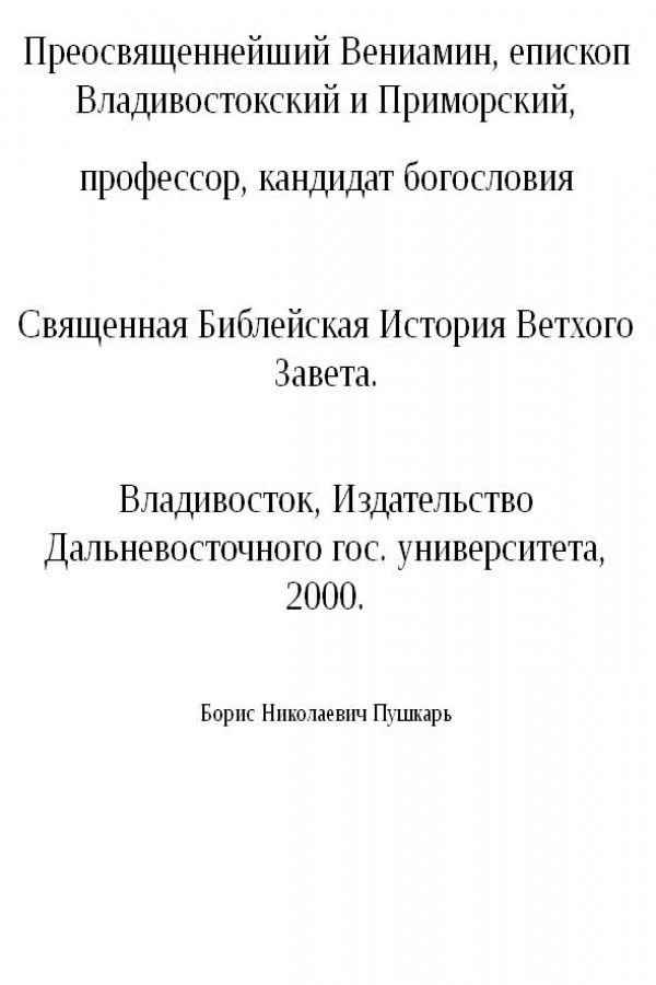 Священная Библейская История Ветхого Завета