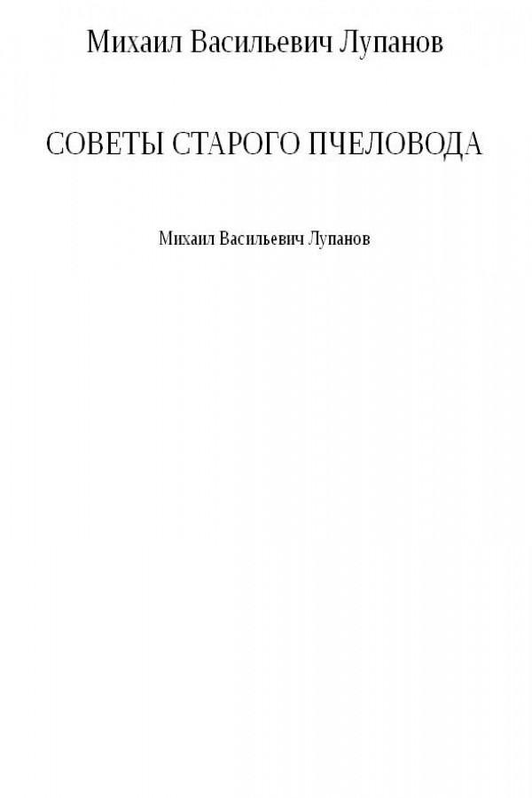 СОВЕТЫ СТАРОГО ПЧЕЛОВОДА