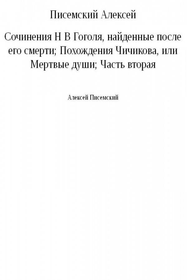 Сочинения Н В Гоголя, найденные после его смерти; Похождения Чичикова, или Мертвые души; Часть вторая