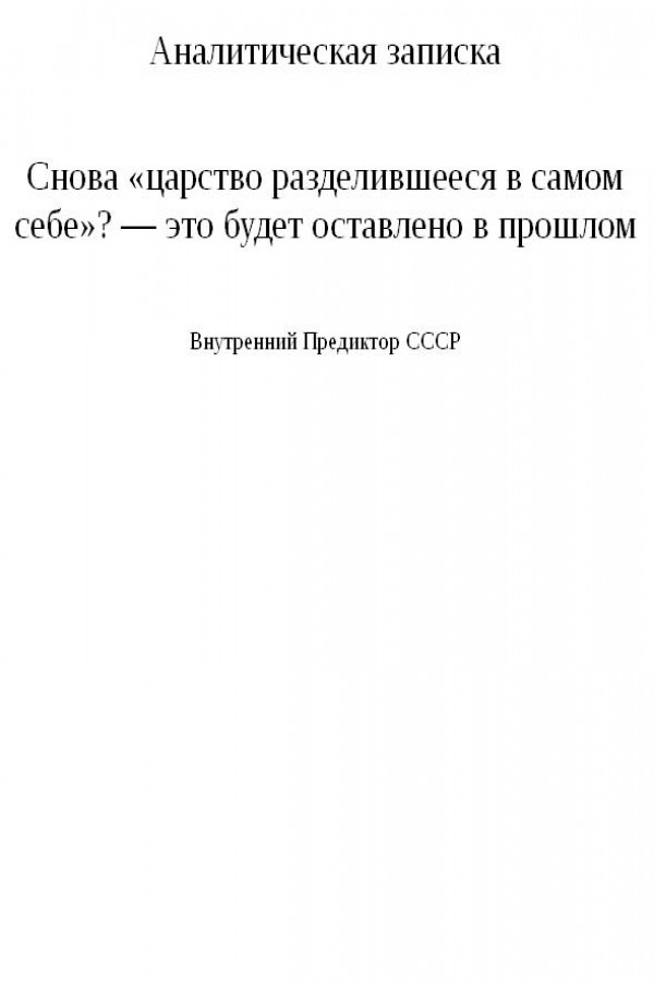 Снова «царство разделившееся в самом себе»? — это будет оставлено в прошлом