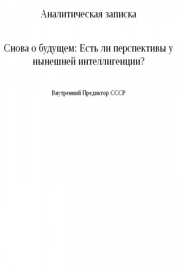 Снова о будущем: Есть ли перспективы у нынешней интеллигенции?