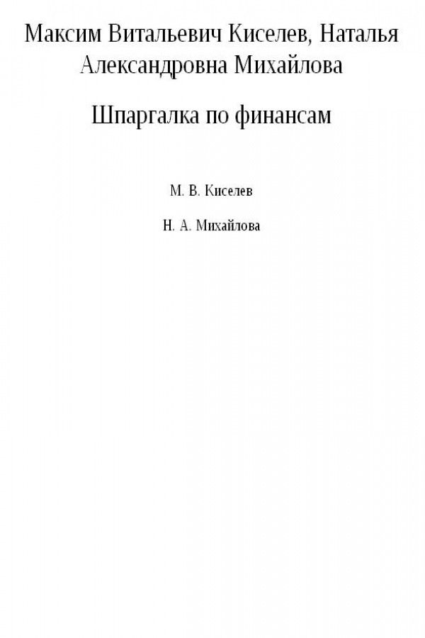 Шпаргалка по финансам
