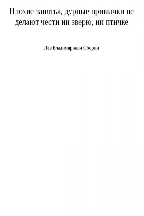 Плохие занятья, дурные привычки не делают чести ни зверю, ни птичке